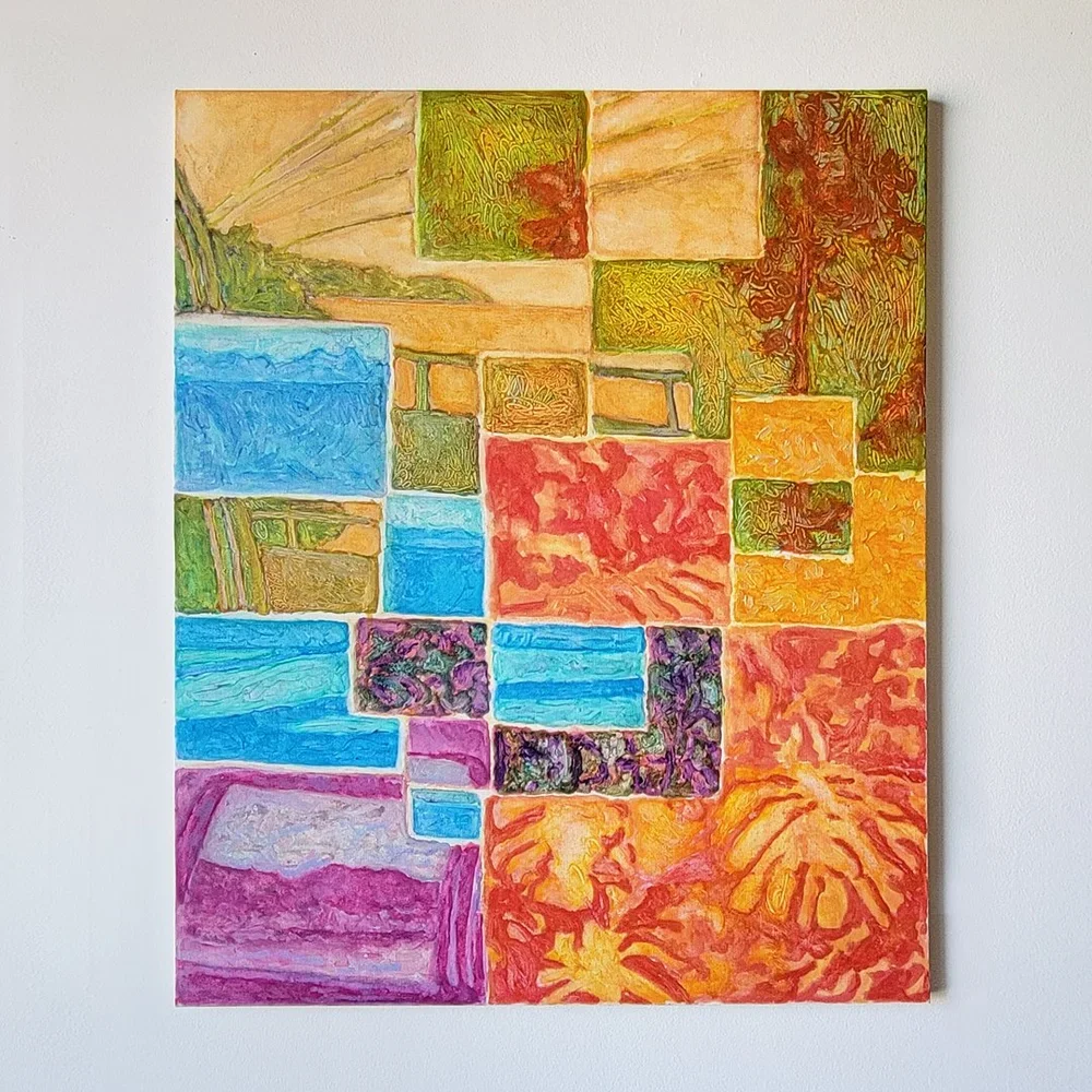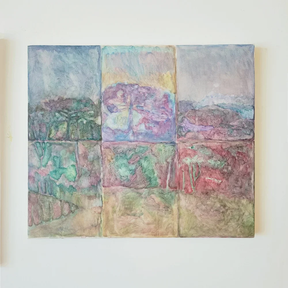 Entre as telas com a temática mais experimental, têm o díptico replicado da “Série Monotonia”, a desnorteante “Montagem de Paisagens”, e as segmentadas “Pintura de Seis Dias” e “Quatro Imagens”. Nessas obras, eu ando em contramão das convenções da pintura figurativa, como o foco num só assunto, o acesso implícito do espectador sobre a paisagem, e a perspectiva tradicional.